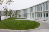 Ovar ist eine kleine Stadt im Norden Portugals. Hier haben Cannatà & Fernandes aus Porto eine neue Schule gebaut, die wie ein Bumerang in unmittelbarer Nachbarschaft eines historischen Gebäudes liegt. Die gekurvte Form leitet sich aus den Linien der Landschaft ab.