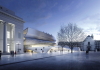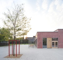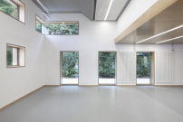 Konstruktiv besteht die Mensa aus Fertigteilen, wobei die tragenden Wandscheiben im Inneren mit einer gesäuerten Oberfläche versehen wurden. Eine außenliegende Pergola mit integrierten Sitzbänken dient als Sonnenschutz. Insgesamt umfasst der Neubau 540 Quadratmeter, wobei dazu auch ein zweiter, kleinerer Saal gehört. Nur, falls es doch mal Ärger geben sollte und man lieber etwas Abstand halten will. (sb)