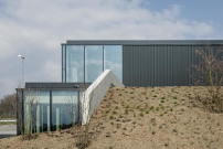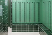Der Standort des Schwimmbads ist der Sportcampus „Allmendli“ der Gemeinde Erlenbach, die etwas südlich von Zürich direkt am See liegt. Zunächst war unklar, wie genau sich die Umnutzung der ausgedienten Unterkunft bewerkstelligen lassen würde. Das Team aus illiz und Pöyry konnte im Vergabeverfahren schließlich durch ihren alternativen Ansatz überzeugen. Das Becken wurde in die bestehende Betonstruktur nur eingehängt, was aufwändige Gründungsarbeiten überflüssig werden ließ. Neben der Technik konnten auch der Eingang und die Garderoben im Bestand untergebracht werden. Geschwommen wird hingegen in einer lichten neuen Halle im Obergeschoss, wobei diese Aussage nun auch wieder nicht ganz richtig ist. Schließlich befindet man sich wegen des eingehängten Beckens ja während des Aufenthalts im Wasser genau unterhalb des Geländeniveaus, sprich also doch wieder irgendwie im Berg – aber lassen wir das und erfreuen uns lieber an der Architektur.