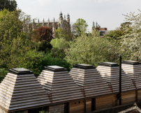 - Cork House in Berkshire (RIBA South) von Matthew Barnett Howland (Eton) mit Dido Milne (Berkshire) und Oliver Wilton (London): Das kleine Haus im Garten einer denkmalgeschützen Mühle besteht bis auf das Tragwerk vollständig aus Kork. Ergebnis eines Forschungsprojekts in Zusammenarbeit mit der Bartlett School, liegt seine CO2-Bilanz bei fast null. Zugleich fällt der archaische Charakter der Architektur mit ihren fünf Lichtpyramiden auf.