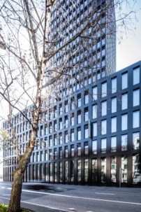 Der Rest ist schnell erzählt: Im sechsgeschossigen Sockel ist auf rund 6.000 Quadratmetern ein Hotel untergebracht, im fast quadratischen Turm circa 11.000 Quadratmeter Bürofläche, die Hälfte davon mietet Bayer Basel. 153 Parkplätze gibt es unterirdisch. Der Grundausbau wurde im Juli 2017 abgeschlossen, bis Ende 2018 soll auch der Mieterausbau erledigt sein. (kat)