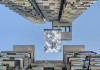 Einige Felder der Laubengänge am Wohnhochhaus sind mit Gittern aus fein perforierten Aluminiumpaneelen ausgefüllt. Durch deren Muster bieten sich von den oberen Stockwerken Blicke auf die schönsten Plätze der Stadt. (pg)