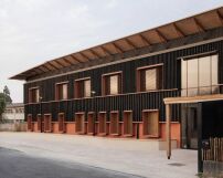 Konstruktiv setzt das Büro auf einen konsequent regionalen Materialkanon: Holztragwerk, Lehm- sowie Kalkputze – und eine Dämmung aus über 1.000 Strohballen! Die Fassaden wechseln zwischen rot eingefärbtem Putz und vertikaler, verkohlter Holzverschalung. Dass diese Methode eine langlebige, chemiefreie Holzschutztechnik darstellt, kann man auch in unserem Themenpaket nachzulesen.