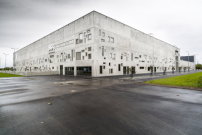 Auch die Fassade des Gebäudes greift die Umgebung auf, indem es die Plattenbauweise der Sowjetzeit in eine zeitgenössische Form übersetzt. Statt einer endlosen Wiederholung immer gleiche Elemente verfügt jede der Betonplatten über individuelle Fensteröffnungen, so dass ein kleinteiliges Äußeres entsteht.