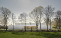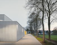 Die bereits erwähnte Höhenstaffelung des Gebäudes passt sich der Topografie des Geländes an und lässt die Baumasse weniger voluminös erscheinen. Aus einem dreiseitig umlaufenden niedrigen Gebäudeteil ragt der höhere Hallenkörper als Herzstück hervor. Er wird allseitig von einem Oberlichtband umlaufen. (da)