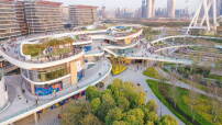 Das Büro Laguarda.Low ist spezialisiert auf ShoppingMalls und Mixed-Use-Projekte, vielerorts in China ist es derzeit an der Planung ganzer Stadtteilzentren beteiligt. Sein Konzept für die OCT OH BAY versucht, die Grenzen zwischen Bebauung und Natur, Gewerbeflächen und Park zu verwischen. Das geschieht über begrünte Dächer und sanfte Rampen, Treppen, Brücken und Wasserbecken, Ruhezonen mit Bäumen, Blumen und Kunstinstallationen. Ein abgesenkter, runder Platz bietet Raum für Veranstaltungen und ist Zugang zur U-Bahnstation. Wasser, natürliches Licht und eine choreografierte Zirkulation sind die Schlüsselelemente der Planung. Durch die Dachüberstände entstehen vor Sonne und Regen geschützte Außenräume. (fm)