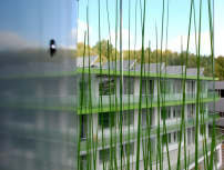 Man fühlt sich auf den ersten Blick an die mit Grasmotiven geschmückten Fassaden von AllesWirdGut Architektur erinnert. Das schmälert aber nicht den frischen und freundlichen Eindruck, den das neue Studentenwohnheim der TH Wildau in Brandenburg von SEHW Architektur (Berlin, München, Hamburg, Stuttgart, Wien) vermittelt. Die Architekten hatten 2006 den vorangegangenen Wettbewerb gewonnen (siehe BauNetz-Meldung vom 7. Oktober 2006). Während andere Campusbauten erst nach und nach fertig gestellt werden, konnten die Studenten pünktlich zu Semesterbeginn in ihre Apartments einziehen.