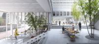 Nach dem Super Space kommt nun die Living Lobby: Das Amsterdamer Büro Studioninedots entwickelt sich zunehmend zum Spezialisten für Zusammenarbeit und Innovation. Ähnlich ihrem letzten Projekt planen sie jetzt auch für Delft ein Gebäude, das mit seinem hybriden Programm die Kreativität der Nutzer beflügeln soll. Das offene Erdgeschoss des Blocks, der mit seinen Backsteinfassaden arg zurückhaltend ausfällt, wird nach ihrer Vorstellung zum Mittelpunkt der neuen Nachbarschaft rund um den Bahnhof.