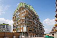 Umlaufende Balkone prägen die „Living Gardens“ in der Seestadt.
