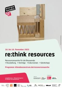 In Bremen hat die gemeinnützige Klimaschutzagentur energiekonsens eine Anlaufstelle für all diejenigen geschaffen, die Orientierung im „Maßnahmen- und Förderdschungel“ in Sachen Klimaschutz suchen. Das Angebot im Klima Bau Zentrum richtet sich an Hauseigentümer*innen wie Mietende, aber ebenso an Bildungsstätten, Behörden, Unternehmen und Baufachleute. Insbesondere Architekt*innen dürften sich für die kommende Themenwoche unter der Überschrift „re:think resources“ interessieren, die von Montag, 10. November bis Sonntag, 16. November 2025, läuft.