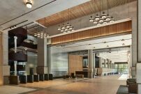 Ursprünglich war der Straßenraum stark auf Fahrzeuge ausgerichtet – heute öffnet sich das Gebäude im Erdgeschoss mit einem doppelgeschossigen Eingangsbereich zur Straße hin. Ein Empfang und ein Café sollen außerdem die Straßenebene beleben. Die neue vertikale Erschließung mit verglasten Aufzügen und offenen Treppenhaus ermöglicht eine flexible Nutzung durch mehrere Mieter und soll diese dazu anregen, die Treppe zu nutzen.