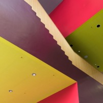 Im Inneren erwartet die Studenten ein kräftiger Mix aus sattem Gelb, Bordeaux, Rot und Gallgrün – ob diese Kombination der Farblehre des Namensgebers der Universität geschuldet ist, bleibt offen. (lr)