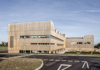 Interessant ist die industrielle Anmutung, die Hawkins\Brown ihrer Architektur trotz der Holzfassade zu verleihen vermögen. Der langgezogene Gebäudeteil erhielt eine Dachkonstruktion mit Oberlichtbändern, die an die Sheddächer alter Fabriken denken lässt. Und der Labortrakt wurde um einen markanten Schornstein ergänzt, der für die Beseitigung des Biomülls benötigt wird. Im Kontrast zur eher gesichtslosen Gestaltung der Umgebung erhält die Architektur dadurch einen starken eigenen Charakter – ganz so, wie man es von einem Gebäude erwartet, das nach einem Champion benannt ist. (sb)