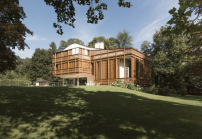 An das traditionelle Material Holz knüpft eine künstlerische Arbeit an, die in den Entwurf integriert ist: eine von historischen Landhäusern inspirierte Tür des Künstlers Plamen Dejanoff. Das Werk eines weiteren Künstlers, des Österreichers Nick Oberthaler, findet sich in den Boden der Terrasse eingelassen. (lr)
