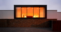 Die Aufteilung im Inneren erklären die Architekten so: „Ein erster schmaler Riegel, in dem die dienenden Funktionen untergebracht wurden, ein zweiter breiterer Riegel, der im Gartengeschoss den Wohnbereich und im Obergeschoss die verschiedenen Schlafzimmer beherbergt. Zwischen beiden Riegeln wurde die Küche als Mittelpunkt des Hauses positioniert. Kinder und Eltern gelangen über eigene Brücken im Luftraum oberhalb dieser Küche in den Service-Riegel zu ihren Ankleideräumen und Badezimmern. Beide Riegel wurden auch im Grundriss so eingeschnitten, dass die Sonne optimal einfällt und gleichzeitig der Blick aufs Tal gewährleistet wird.“ (lr)