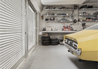 Insbesondere tagsüber gibt sich das dreigeschossige Gebäude verschlossen, nur ein roter Oldtimer verweist – zumindest zeitweilig – auf den Zweck des Gebäudes. Ein schroffer Stapel aus Aluminium und Beton steht da an der Straßenecke, auf seltsame Weise gleichermaßen zurückhaltend wie expressiv. Die gefaltete Betonstruktur, die vor allem im Obergeschoss gut zu erkennen ist, bildet zugleich das konstruktive wie funktionale Rückgrat des Gebäudes: Sie trägt, lässt Licht ein, schützt vor Lärm, sammelt Regenwasser und unterstützt die natürliche Belüftung.