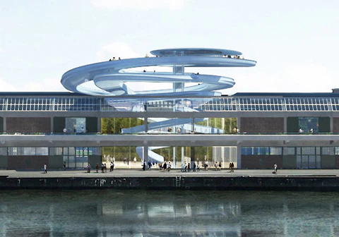 Immer wieder gut für einen Besuch sind die Hafenareale, die mit Experimenten wie einer auf Pontons schwimmenden Farm derzeit als ökologische Stadtlandschaft neu erfunden werden, wie wir in der Baunetzwoche#518 erklären. In der alten Fenix-Lagerhalle, wo derzeit trendige Speisen und Getränke serviert werden, soll bald eine spiralförmige Aussichtsplattform entstehen, die das ganze Geschehen von oben sichtbar macht. (fm)