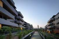 Die zwei fast parallel zueinander positionierten Wohnblöcke sind ausnahmsweise nicht im Segment des sozialen Wohnungsbaus angesiedelt – vielmehr soll hier eine soziale Durchmischung stattfinden. Die Architekten betiteln das Projekt als „elegante Architektur“, deren Vermarktung nicht lange auf sich warten ließ. In diesem Sinn gestalteten sie das Gelände im mediterranen Flair: „Die Freiflächen sollen als eine Art Lustgarten mit ortstypischen Pflanzen gestaltet werden – mit Zypressen, Pinien, Olivenbäume, Zedern, Platanen, Obstbäumen und vielfältigem Laubholz.“