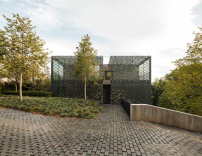 Camouflage-Muster sind schon seit fast zwei Jahrzehnten ein Dauertrend, doch luxuriöses Wohnen gehörte bisher nicht zu den typischen Einsatzfeldern. Mit ihrem jüngsten Projekt möchte das katalanische Büro PMMT Arquitectura dies nun ändern – so darf man zumindest annehmen. Das dreigeschossige Wohnhaus, das die Architekten gerade in ihrer Heimatstadt Barcelona errichtet haben, versteckt sich unter einer Art Tarnnetz. Das jedoch besteht nicht aus Textil, sondern – und hier kommt der Luxus ins Spielt – aus dunkelgrün changierenden Kacheln.