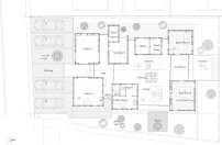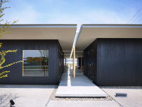 Das Privathaus mit einer Wohnfläche von 194 Quadratmetern ist als Haus im Haus konzipiert. Wie Baumkronen schweben die auskragenden Dächer über den acht Baukörpern, die jeweils eine Wohnfunktion beinhalten. Küche,  Ess- und Wohnzimmer sind als Durchgangszimmer frei dazwischen angeordnet und verbinden die einzelnen Wohnbereiche. Wirklich praktisch sind die zwei angegliederten Vorrats- und Aufbewahrungskammern, die das minimale japanische Wohnflair erst möglich machen. Schwarze Holzoberflächen, helle Fußböden und die weiße Decke bestimmen das Innere des Wohnensembles, das aus Holz mit einer Stahl-Unterkonstruktion gebaut wurde. Die gemeinschaftlichen Wohnbereiche sind durch hellen Estrich gekennzeichnet, während die privaten Wohnräume und Ateliers mit Holzböden ausgestattet wurden.