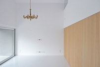 Und dann wundert man sich. Was außen beinahe abschreckend wirkt, verwandelt sich im Inneren in eine freudig-helle Atmosphäre. Weiße Wände, helles Holz, viel Licht und Platz bieten ein angenehmes Wohngefühl. Pastellig und soft, davon sprechen die Architekten nicht nur im Kontrast zur dunklen Hülle, sondern sie leben diese Eigenschaften bei der Gestaltung der Innenräume auch in vollen Zügen aus – auf eine ironische Weise, versteht sich. (pg)