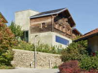 Mehrere Betonmonolithen und eine intelligente Hütte für den Alpenverein haben Savioz Fabrizzi aus Sitten im Wallis gemeinsam mit den Bauingenieuren alpatec (Martiny) in die Schweizer Berglandschaft gesetzt. Ebenfalls in diesem Team entstand nun ein weiteres Projekt im benachbarten Ort Ormône: Die Architekten verwandelten ein traditionelles Holzständerwerk auf Natursteinsockel in ein modernes Einfamilienhaus. Unter einem Dach vereint soll die Kombination aus Bestandsbau und einer schlichten Betonerweiterung die „zeitlose Dualität“ von „mineralischem Rückgrat“ und wohnlichem Holz erhalten und zugleich neu interpretieren.