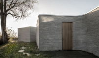 Alle Räume des 180 Quadratmeter-Baus haben eine zum Weiß der übrigen Wände im Kontrast stehende holzverkleidete Seite – ein Element, das ADEPT auch in der Bibliothek von Dalarna einsetzten. Hier allerdings etwas kleiner: Im Wohnzimmer ein handgearbeitetes Bücherregal, in der Küche sind es die Kücheneinbauten, im Eingangsbereich eine hölzerne Garderobe und eine Wand aus Holzlamellen im Schlafzimmer, die den Eingang zum Badezimmer markiert. Der Garten ist wie seine Umgebung mit Büschen, Wildblumen und Schieferplatten gestaltet. (kat)