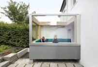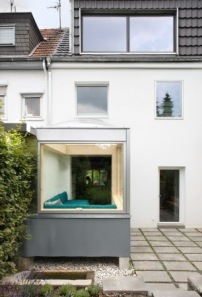Das Badezimmer zu klein, die Schlafzimmer ohne Heizung und dann auch noch kein Wohnzimmer: Wer ein Haus umbauen möchte, sollte vor dem Kauf wissen, worauf er sich einlässt. Björn Martenson vom Büro AMUNT Architekten Martenson und Nagel Theissen (Aachen/Stuttgart) hat für eine fünfköpfige Familie im Aachener Stadtteil Burtscheid ein schmales Reihenhaus aus den 1930er Jahren umgebaut und saniert. Von der Straße aus sieht man so gut wie nichts, denn die gesamte Wohnsiedlung steht unter Ensembleschutz. Aber im Garten: Dorthin wurde das Sofa ausgelagert.