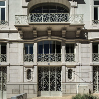 Die Rua Rodrigo da Fonseca in Lissabon war von Stadthäusern aus der Jahrhundertwende geprägt. Inzwischen ersetzen Neubauten mit Rasterfassade auf vielen Grundstücken die marode Substanz. Appleton e Domingos Arquitectos (Lissabon) wollten Haus Nummer 49 erhalten. Doch ein Brand kurz vor Fertigstellung vereitelte die Sanierung, zumindest teilweise: Der Beton-Neubau, den die Architekten stattdessen realisierten, präsentiert weiterhin die alte Jugenstilfassade zur Straße.