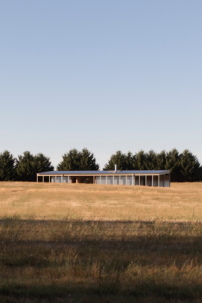 Das australische Büro Lovell Burton Architecture aus Melbourne hat eine ganze Reihe von Entwürfen für Menschen, die der Stadt überdrüssig geworden sind, im Portfolio. Das im vergangenen Jahr fertiggestellte, inmitten von Feldern gelegene Springhill House sticht dabei mit seinem Purismus und auch in seinem Anspruch heraus: Angelehnt an die Kubatur des klassischen australischen Heuschobers, der im Wesentlichen aus einem aufgeständerten Pultdach ohne Wände besteht, ist dieses Wohnhaus für einen privaten Bauherren durch und durch rational und zweckmäßig gehalten. Eine Reihe von Leimbindern tragen das große Pultdach, das neben dem Sammeln von Regenwasser zudem den Strom für den Eigenbedarf durch Sonnenkollektoren zu erzeugen vermag.