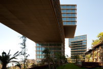An der Stelle eines für das Projekt abgerissenen Hotels haben die Architekten eine Gebäudeformation gestellt, die im wesentlichen aus drei gläsernen Wohntürmen besteht. Ein Teil der Gebäudekubatur dient als Brücke und verbindet zwei der Gebäudeteile miteinander.