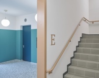 Eine besondere Rolle für das Gesamtprojekt spielt das sechste Obergeschoss. Hier konnte sich schon während der Planung eine Gruppe mit ihrem gemeinschaftlichen Wohnprojekt einbringen. Es entstanden neun separate Einheiten mit individuellen Grundrissen. Darüber hinaus waren diese Bewohner*innen auch in die Gestaltung der übrigen gemeinschaftlichen Bereiche involviert. (sb)