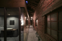 Versteckt und trotzdem offen – das ist die Strategie für ein kleines Wohnhaus in der südwest-japanischen Stadt Mihara in der Nähe von Hiroshima. Innerhalb eines alten Lagerhauses realisierte der Architekt Keisuke Kawaguchi mit seinem Büro K2-Design (Fukuyama) einen modernen Bungalow, der sich zwar mit seinen Glaswänden deutlich abgrenzt, jedoch trotzdem die historische Umgebung nutzt, um eine besondere räumliche Tiefe zu erzeugen.