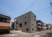 Ein Eckgrundstück in einem dichtgepackten Wohngebiet in Tokio – das ist zunächst nichts Ungewöhnliches. Doch dieses Grundstück grenzt direkt mit seiner Schmalseite an eine aufgeständerte Eisenbahnlinie, von der Lärm und Erschütterungen ausgehen. Die Architekten K2YT (Keisuke Koile + Takuichiro Yamamoto) entschieden sich bei diesem Zweifamilienhaus dafür, die Parzelle, abgesehen von einem schmalen Beet vor dem Haus, komplett zu überbauen und den Außenbezug nach Süden und Westen durch eingezogene Loggien und Innengärten herzustellen. Nach Norden, zur Bahn hin, schottet sich das Haus dagegen aus Lärmschutzgründen nahezu völlig ab.