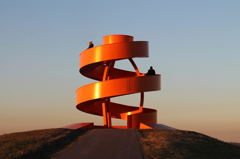 Häufig ist solch ein Panorama das Ziel eines Ausflugs. Der dramatisch gesetzten Plattform von noa* network of architecture über dem Schnalstaler Gletscher wird wohl eine strapaziöse Wanderung vorausgegangen sein, ebenso Zaha Hadids Museum für Reinhold Messner, das vor allem für seinen spektakulären Blick auf die Dolomiten steht. Bei einem von Dorte Mandrup Arkitekter auf einer norwegischen Insel geplanten Besucherzentrum, nur 300 Kilometer vom Polarkreis entfernt, bleibt indes unklar, wie man diesen besonderen Ort dann überhaupt erreicht. Zum Belvedere von Sauerzapfe Architekten in Würzburg hingegen gelangt man schon auf einem mußevollen Parkspaziergang. Im Elsass ist der cortenstählerne Weg von Reiulf Ramstad Arkitekter zugleich das Ziel.