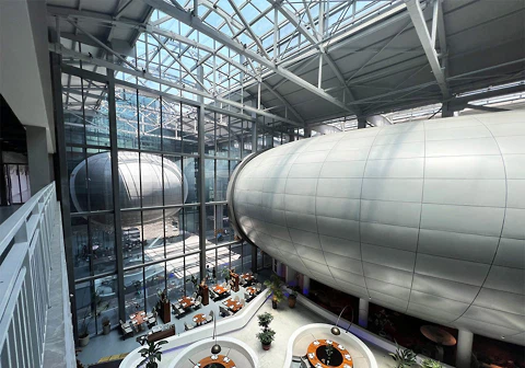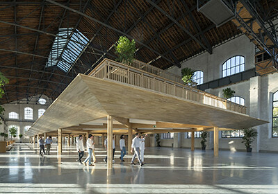Die zentrale Frage für Planer*innen ist dabei natürlich, wie mit dem Bestand umgegangen wird. Bietet sich ein maximaler Kontrast an oder fügt man sich eher unauffällig ein? Können die alten Produktionsanlagen möglicherweise effektvoll in Szene gesetzt werden? Unsere Auswahl bietet diverse Strategien an: Von der eingestellten Tischkonstruktion bei Foster + Partners in Madrid über schwebende Zeppeline von Peter Ruge Architekten in Hangzhou bis hin zu komplett neuen Fassaden wie die von ODA in New York. Besonders schön wird es jedenfalls immer dann, wenn die historische Architektur und Funktion lesbar bleibt. (mh)
