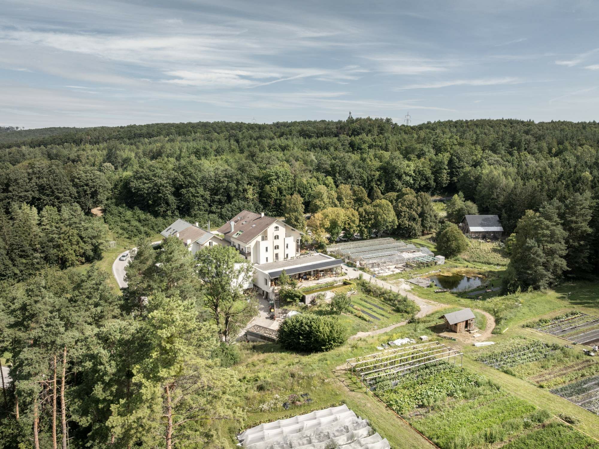 Hinzu kam eine leerstehende Feldscheune aus dem nahe gelegenen Kamptal. Im Rahmen ihrer Ausbildung demontierten diese Schüler*innen und Lehrer*innen einer Berufsschule und bauten sie an Stelle des ehemaligen Tennisplatzes als Hühnerstall wieder auf. Auch ein 700 Quadratmeter umfassendes Gewächshaus aus St. Pölten erhielt auf dem 2,7 Hektar großen Gelände in Mayerling ein zweites Leben.