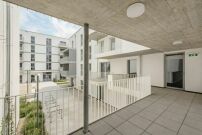 Doch das wahre Highlight des Campo Breitenlee, Resultat eines Bauträger-Wettbewerbs, das mit den beiden Wohnbauträgern Wiener Heim und Österreichisches Volkswohnungswerk (ÖVW) errichtet wurde, liegt in seinem Inneren verborgen: Die sieben Zentimeter dicken, vorgefertigten Elementdecken wurden bereits im Werk mit wasserführenden Installationen ausgestattet, vor Ort nur noch miteinander verbunden und schließlich zu einer tragfähigen Verbund-Ortbetondecke aufbetoniert. Die Bauteilaktivierung hat in den heißen Sommermonaten bereits Wirkung gezeigt: Bei einem Besuch vor Ort meinten einige Bewohner*innen, dass sie eine spürbare Kühlung der Innenräume um zwei bis drei Grad Celsius verzeichnen konnten.