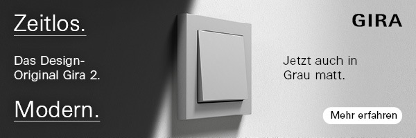 Für die Verfechter der Monochromie ist die Gira Designline E2 neben Schwarz matt und Reinweiß seidenmatt nun auch in elegantem Grau matt erhältlich. In Kombination mit dem modularen Schalter-Baukasten Gira System 55 können rund 300 Funktionen in einheitlichem Design und Material zusammengestellt werden.